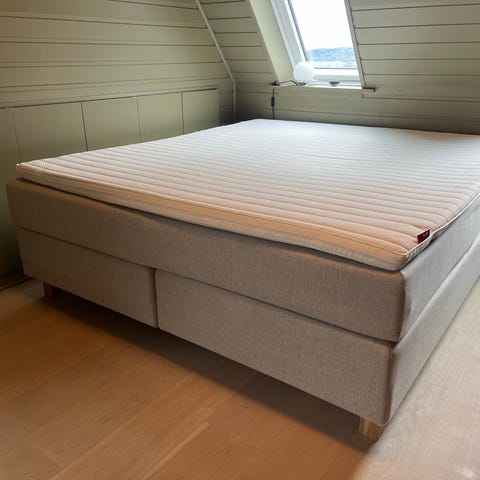 Madrassen er kjøpt ny for 14000 kr. https://www.skeidar.no/alle-produkter/alle-senger-og-madrasser/overmadrasser/superior-puls-latex-overmadrass/?variationId=V_5637167807