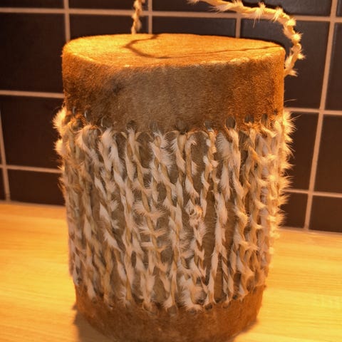 Diameter 24 cm. Height 51 cm. Brought from Africa, bought for a drum circle, from a teacher. Used very little. Suitable for an adult. Selling with a cover.