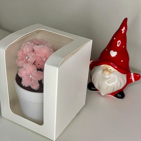 Dekorativ blomsterdekorasjon i rosa vase/eske