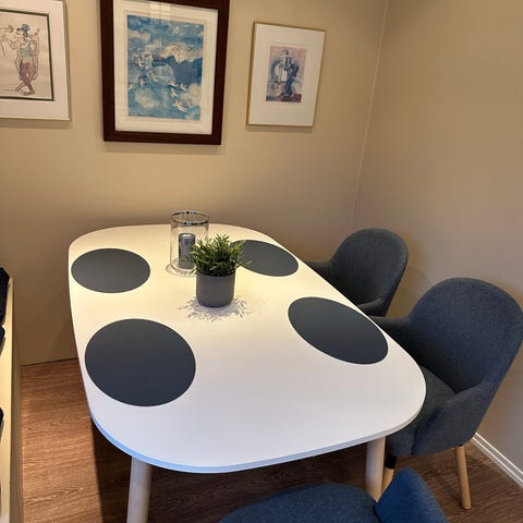 IKEA bord 140x84 med 2 ilegges plater som følger med pluss 4 stoler som jeg ikke husker hvor er kjøpt