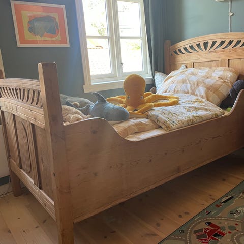 Pris gjelder sengen. Garderrobeskap ligger også ute i egen annonse for 1900. Samlet pris for hele møblementet kan diskuteres.