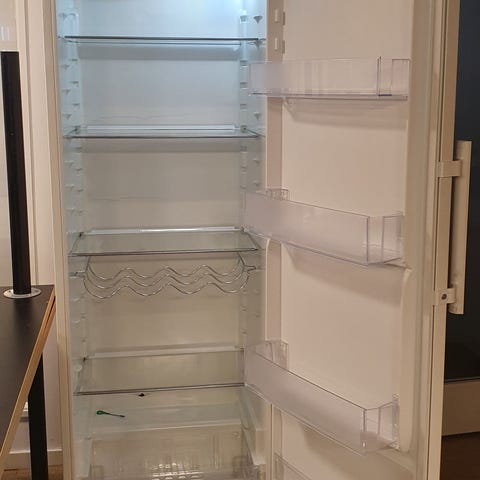 Fint kjøleskap som sto i det nye huset da vi skulle flytte inn. Usikker på årsmodell, men virker nytt og energieffektivt. Og det er jo bra.
