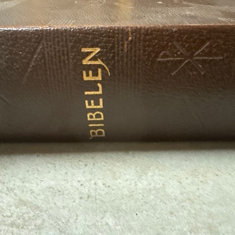 Bibelen bok med svart omslag. Inneholder religiøst innhold. Passer til personlig bruk eller studier.