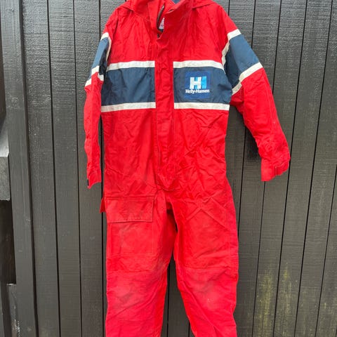 Helly Hansen flyte dress i størrelse Medium. Dressen har svart buksedel og rød overdel med hette. Egnet for kalde værforhold.