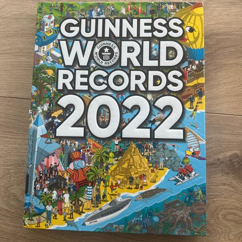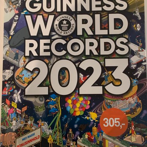 Guinness World Records 2024 bok med oppdatert innhold for året 2024. Inneholder rekorder og fakta innen ulike kategorier.