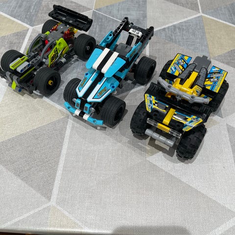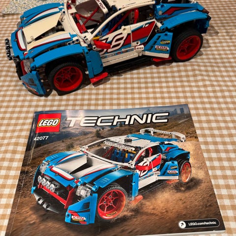 Skal være mulig å bygge det aller meste av LEGO Technic Rallybil (sett 42077) med delene. (Men usikker på hvor komplett denne er. Følger ikke med instruksjonstegning eller eske.