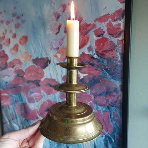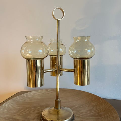 Dekorativ vintage lysestake i ekte messing, produsert i ca. 1970–1990-tallet.