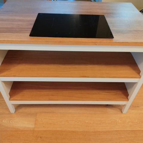 Kjøkkenøy søker ny eier da rommet skal endres og vi ikke har plass til kjøkkenøya. Benkeplaten er av stein. Vet ikke hvordan type stein det er, men antar at det er granitt eller kompositt.