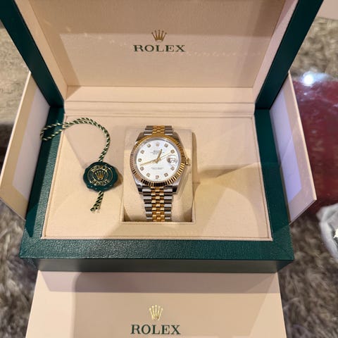 Selger en Rolex Datejust 41 med den ettertraktede Slated skive , fluted bezel og Jubilee-lenke.