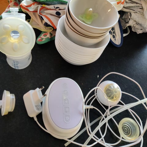 Har noe flekker på det hvite stoffet inni, men det vises ikke.