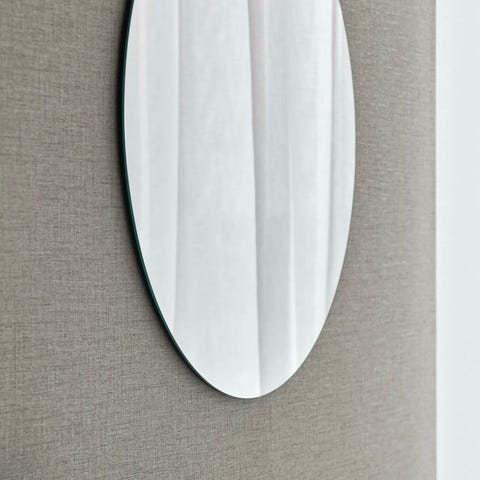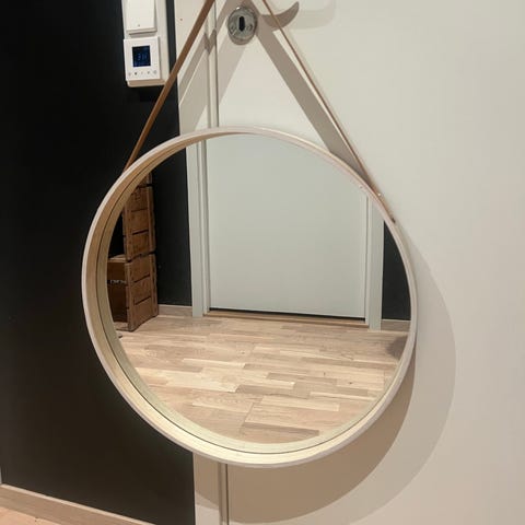 IKEA rundt speil med ramme i tre. Speilet har en enkel og naturlig design som passer til ulike rom og interiørstiler.