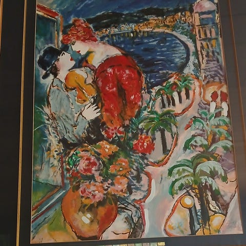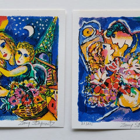 Fantastisk, stort litografi, 73 * 94 cm inkl ramme, signert Zamy Steynovitz, 214/275, sjeldent ute for salg! Nydelige farger omfavnet av en flott kongeblå ramme med gulldetaljer.