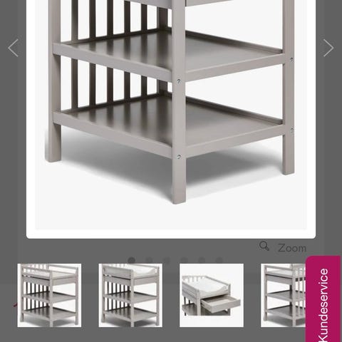 Jollyroom stellebord med skuff og to hyller. Bordet er hvitt, og så har vi montert ei lita knaggrekke (skilpadden). Godt med plass til oppbevaring.