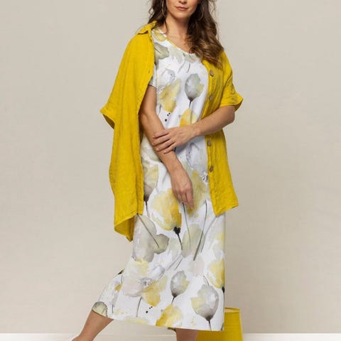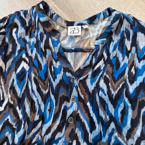Stilig og behagelig bluse fra 2-Biz med dekorativt mønster i varme toner. Løs og flatterende passform, perfekt til både hverdag og jobb. Pent brukt og i god stand.