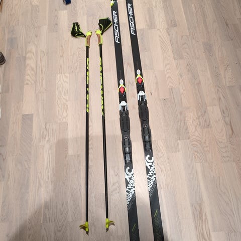 Skiene er kun prøvd på kort tur, støvlene er ubrukt og har fortsatt lapper på.