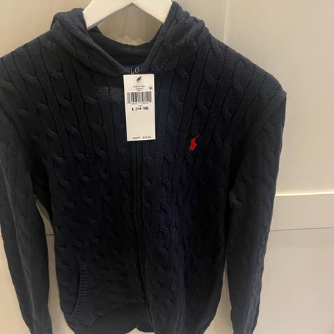 Ralph Lauren Polo hettegenser hoodie blå. Brukt og vasket en del, men hel og grei. Str 14-16/L i barnestørrelse.