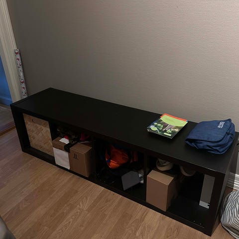 Jeg har brukt dette som hylle ved inngangen. Det kan også brukes som tvbenk hvis ønskelig.