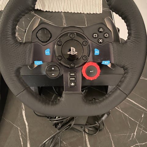 Logitech G29 Racing Wheel og pedaler for PlayStation. Inkluderer ratt med knapper og girspak, samt tre pedaler for gass, brems og clutch. Rattet har skinnbelagt grep og flere funksjonsknapper. Pedalene er laget i metall og plast. Og girspak