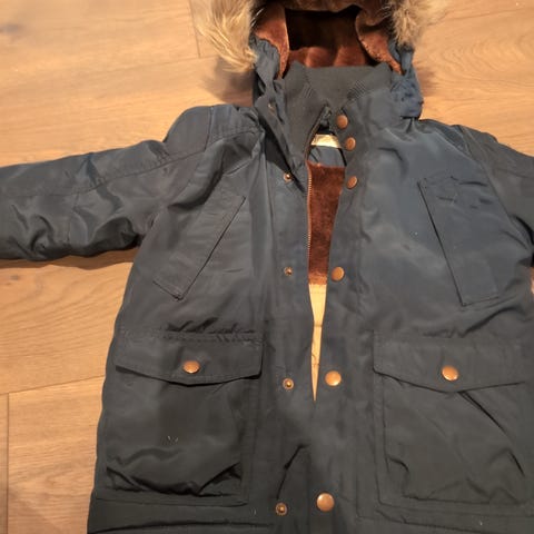 Mye bruk igjen. En liten flekk rett over lommen, ikke forsøkt fjernet.