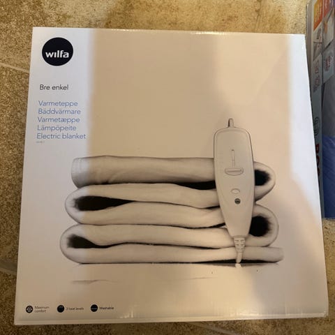 Varmeteppe / varmepledd fra Wilfa. Modell HBW-1. Lite brukt. I god stand.