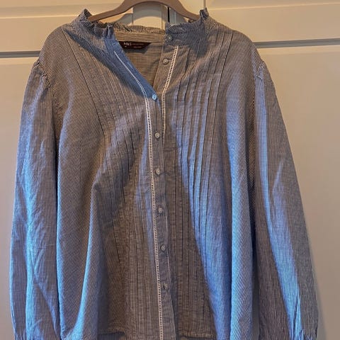 Søt og feminin bluse fra Marks & Spencer med småblomstret mønster. Lett og behagelig stoff med fin passform. Like fin til hverdags som til jobb eller pent bruk.