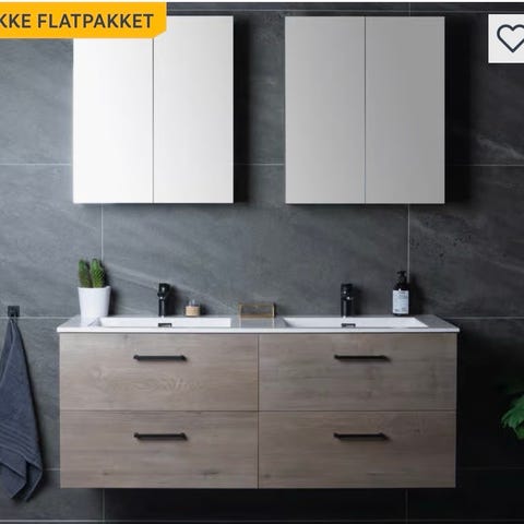 Servantskap med servant. Skapet har to dører med håndtak, og servant med ett hull for blandebatteri. Passer til baderom og gir oppbevaringsplass under vasken.
