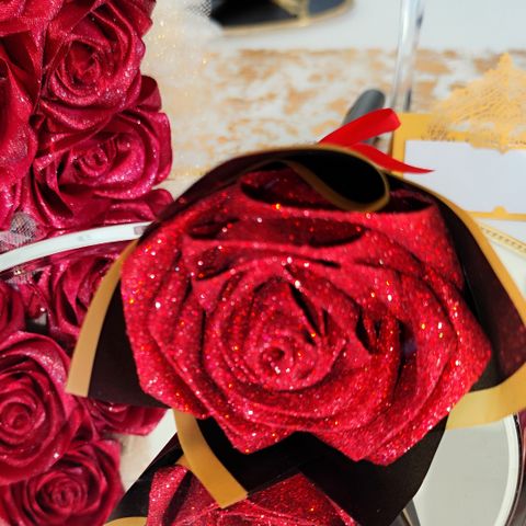 Artificial rosebukett og rosebamse til princesse selges rimelig