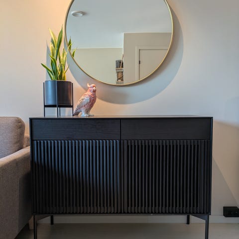 Mål: B: 60 cm D: 22 cm x H: 77 cm med den korteste wire/ 120 cm med den lengste wiren.