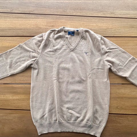 Lambwool genser i størrelse 3XL laget av 80% lambsull 20% nylon. Genseren har en rund hals og er i en lys grå farge. Passer for menn.