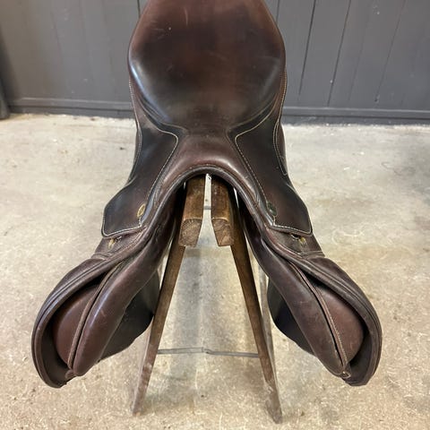 Selger Prestige Arezzo sprangsal, 17" som er tatt ut til 36 i bomvidde. Hel og fin sal, som kan selges som salpakke inkl. fortøy m/martingal, lærgjordt i str.120cm, stigbøylereimer m/bling og strigbøyler(lakkert i svart, men litt slitt).