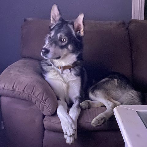 Balder er en husky/border collie blanding som vi dessverre ikke kan ha. Vi solgte han og han ble da etter en stund solgt videre. Nå har vi måttet ta han tilbake. Vi har hatt han siden august og det har godt forholdsvis greit.