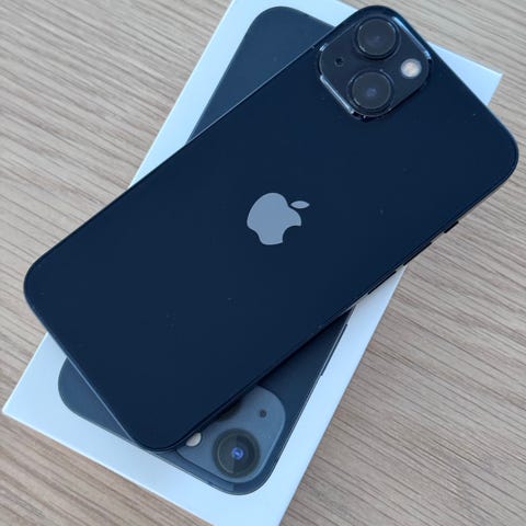 Selger en Apple iPhone 13 (128 GB) i flott blå farge.