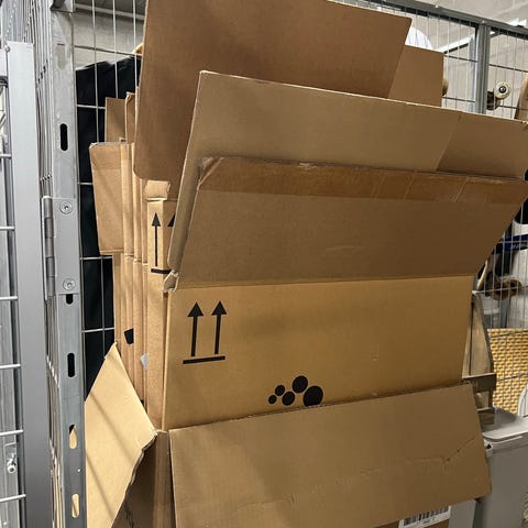 13 store pappesker/flytteesker fra Biltema og 3 fra Europris selges.