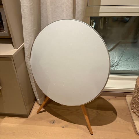 Bang & Olufsen lydplanke med et stilrent design. Produktet er laget av materialer som inkluderer tre og tekstil, og er beregnet for lydforbedring i hjemmet.