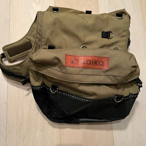 Nesten ubrukt kløv fra Laika. Brukt til samojed tispe på omlag 24 kg. Rommer 20 L.