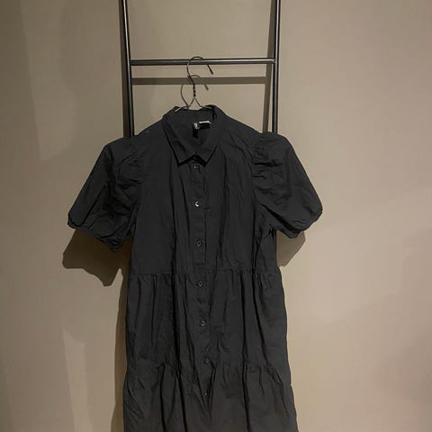 H&M Andre kjoler i størrelse M, farge svart, laget av polyester. Kjolen har lange ermer og et drapert design foran.