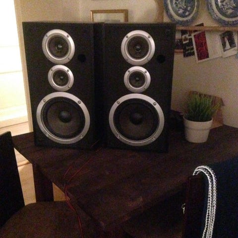 Pioneer høyttaler med hvit og svart design. En kompakt lydenhet med flere knapper for kontroll og tilkoblingsmuligheter på baksiden. Usb og ipod ko