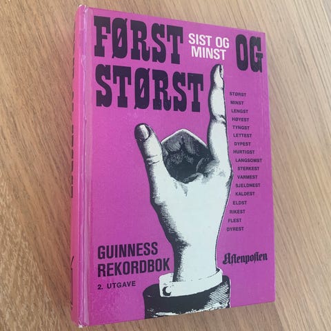 Guinness Rekordbok Først og Størst er en bok som dokumenterer ulike rekorder. Dette er 9. utgave utgitt av Schibsted. Boken inneholder informasjon om verdensrekorder innen flere kategorier, og er en referanse for offisielle Guinness-rekorder.