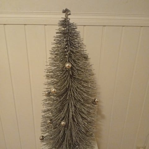 Kunstige grønne granbusker med gullglitter selges.