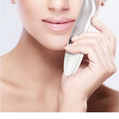 Eyeology øyemaske med massasje, inkludert oppbevaringsetui. Masken er hvit med justerbar stropp og har kontrollknapper for ulike massasjefunksjoner. Designet for øyeavslapping og massasje.