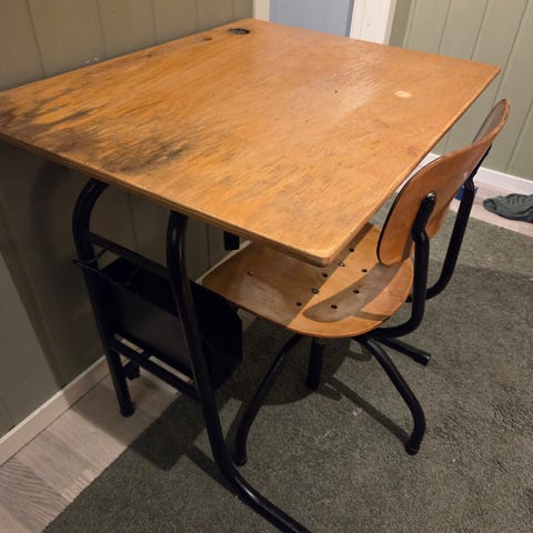 Pent brukt skrivebord og stol. Noen bruksmerker men ellers i god stand.