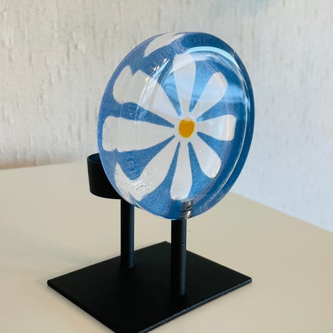 T- lysholder. Foten er laget i smijern. Høyde 14 cm. Må hentes.