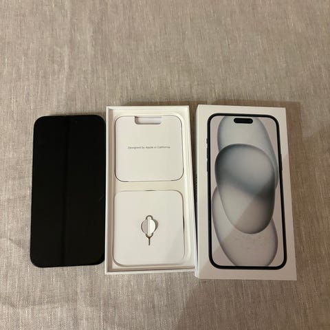Apple iPhone 15 Plus mobiltelefon med 256 GB lagringskapasitet. Modellen har en svart farge og er designet for å tilby avanserte funksjoner og høy ytelse.