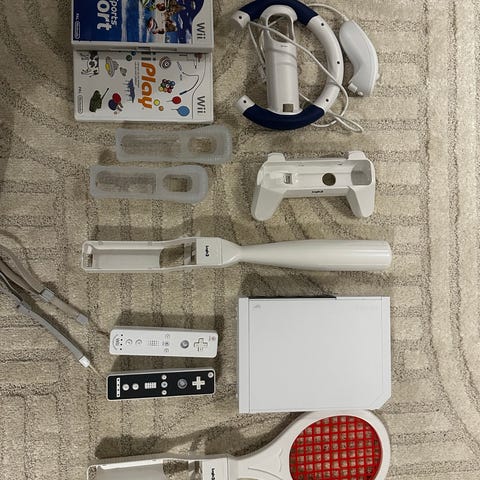 Nintendo Wii spillkonsoll i svart farge. Inkluderer konsoll og tilhørende kontroller. Designet for innendørs bruk med TV-tilkobling. Passer til spillere som ønsker interaktiv underholdning.