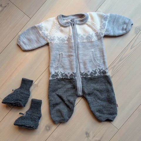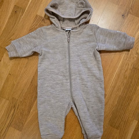 Lindex ulldress i merinoull, størrelse 56, i grå farge. Passer for både gutter og jenter. Dressen har praktisk glidelås for enkel av / påkledning. Dessverre rakk denne knapt å bli brukt av oss da det ble litt feil sesong for vårt barn.