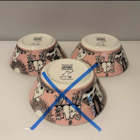 Ny, utgått Mummi tallerken, med etikett.