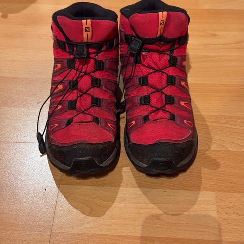 Salomon unisex tursko i størrelse 38 2/3. Skoene er svarte og designet for utendørs bruk med slitesterkt materiale og godt grep på sålen. Selges billig for 250kr