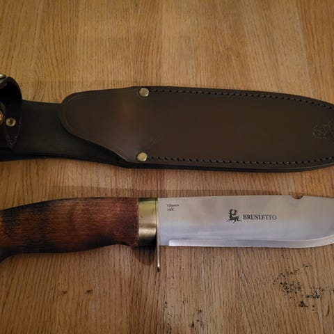 Ny Brusletto Villguten 440C kniv selges. Kniven er totalt 28,5 cm lang med 16 cm blad. Sendes for kjøpers regning.