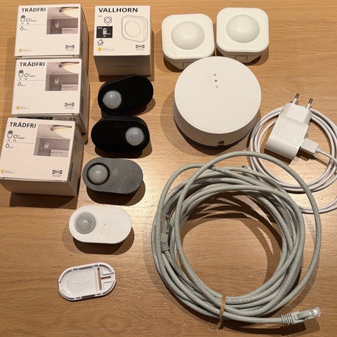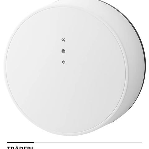 Selger en nesten ubrukt Ikea gateway. Lar deg styre belysning, gardiner osv. via en app på mobilen. Laste ned Ikea home app, koble til strøm og til din wifi ruter og du er i gang. Følger med lader, USB ladekabel og nettverkskabel. Mangler bare original eske.