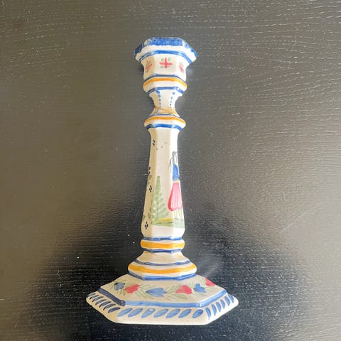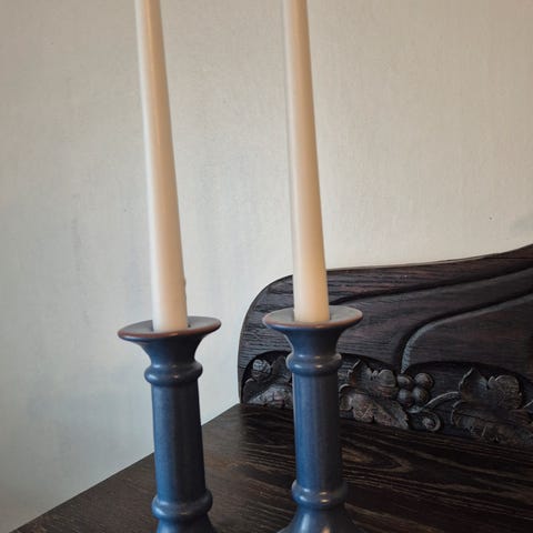 Et par keramikklysestaker med luciamotiv, merket Gerd. Hvit glasur. Hele og pene, men noe krakellert i glasuren (se bilder). Høyde 17 cm, diameter 8 cm. Selges samlet for 450,-
